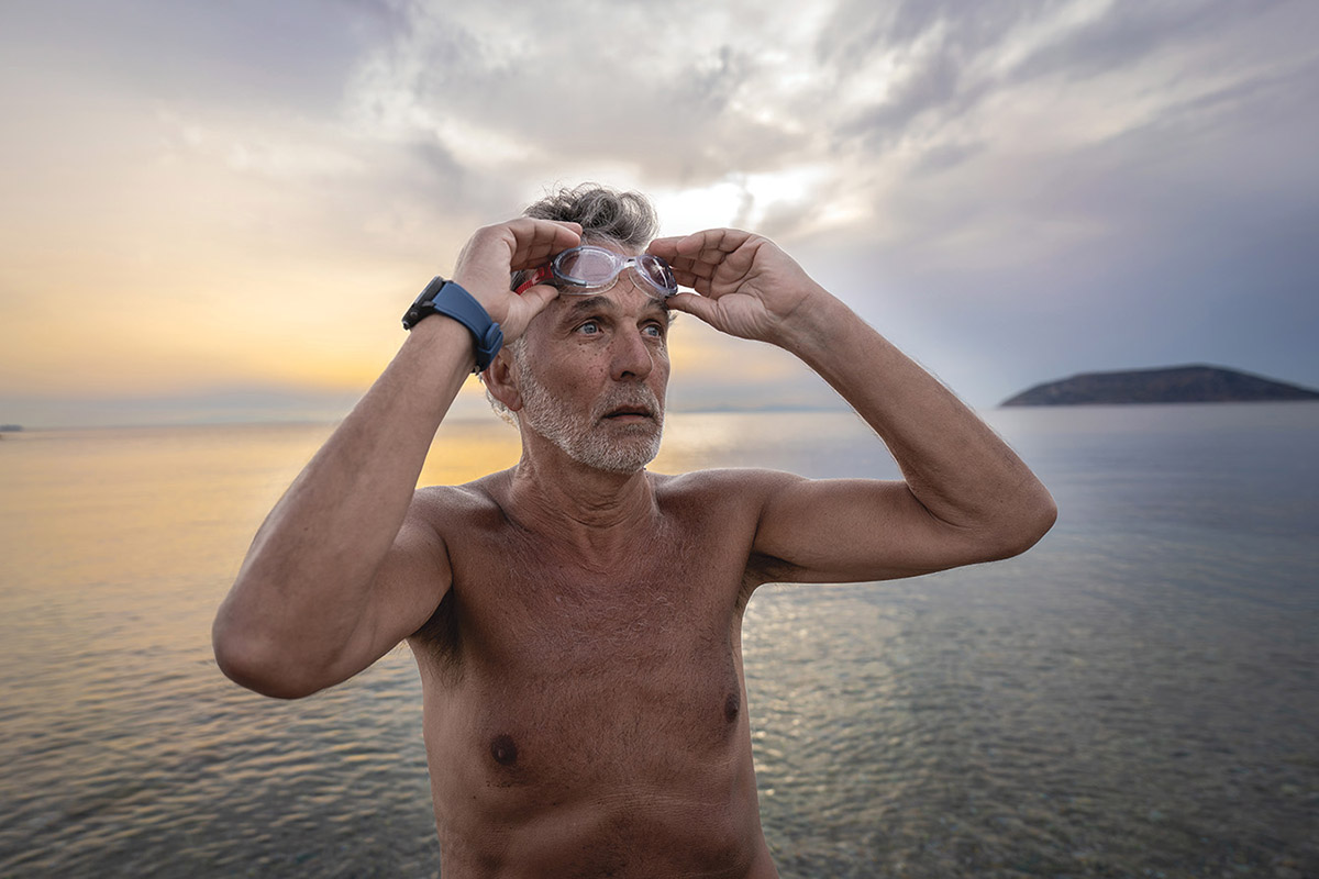 Βλέπουμε έναν μεγαλύτερο σε ηλικία άνθρωπο που νικάει κάθε μέρα τον χρόνο, συνεχίζοντας να κάνει αυτό που αγαπάει, τη χειμερινή κολύμβηση.