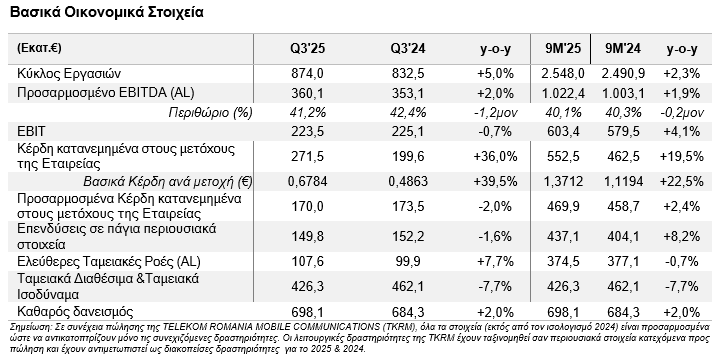 - Συνεχίζεται η αναπτυξιακή δυναμική στην Ελλάδα: αύξηση 5,0% στα έσοδα και 2,0% στο προσαρμοσμένο EBITDA (AL)