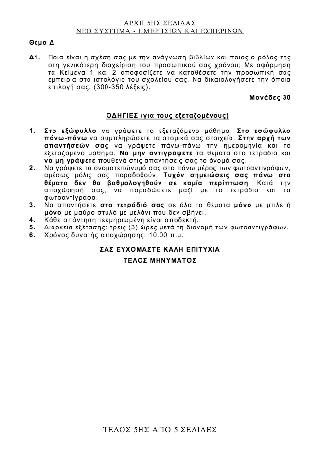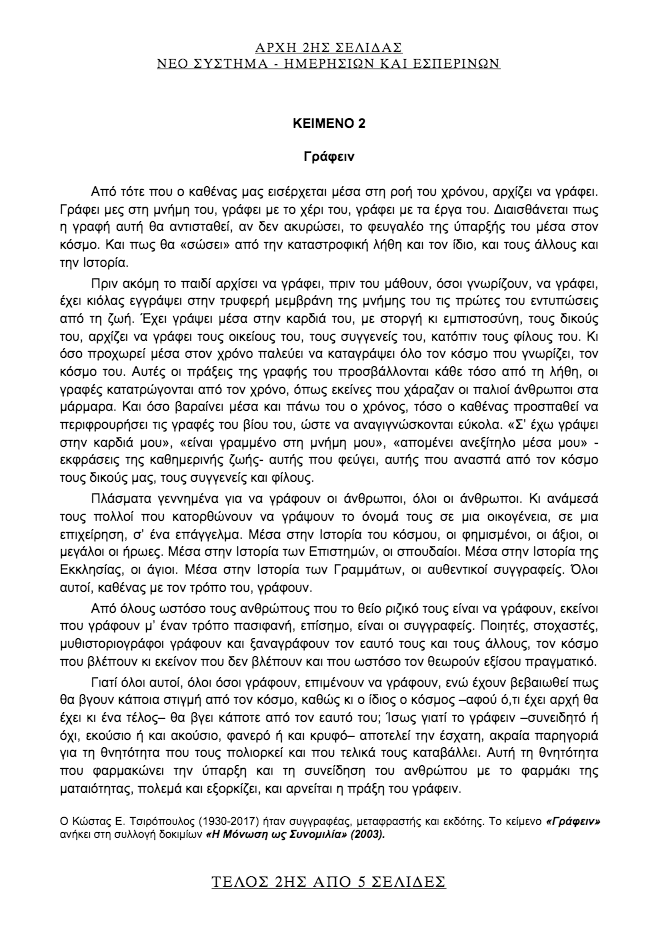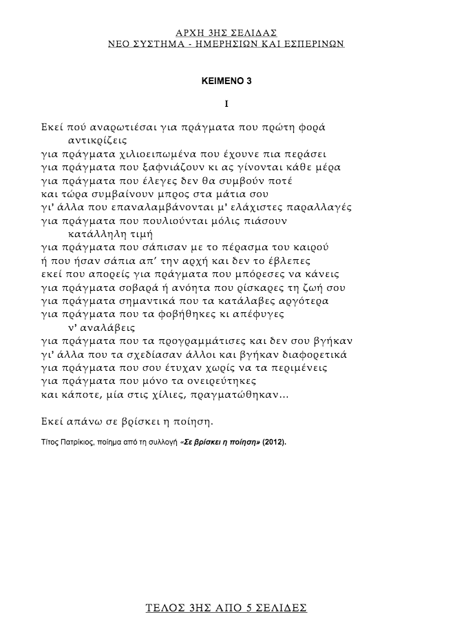 Δείτε το θέμα που κλήθηκαν να εξεταστούν οι υποψήφιοι.