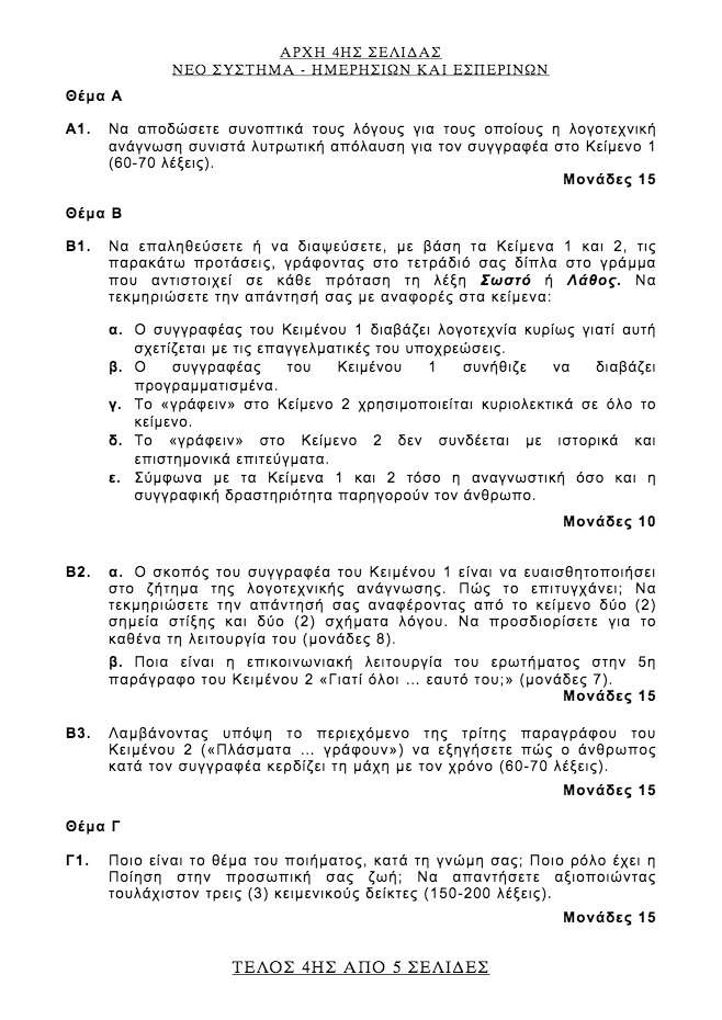 Οι απαντήσεις στα θέματα Νεοελληνικής Γλώσσας και Λογοτεχνίας