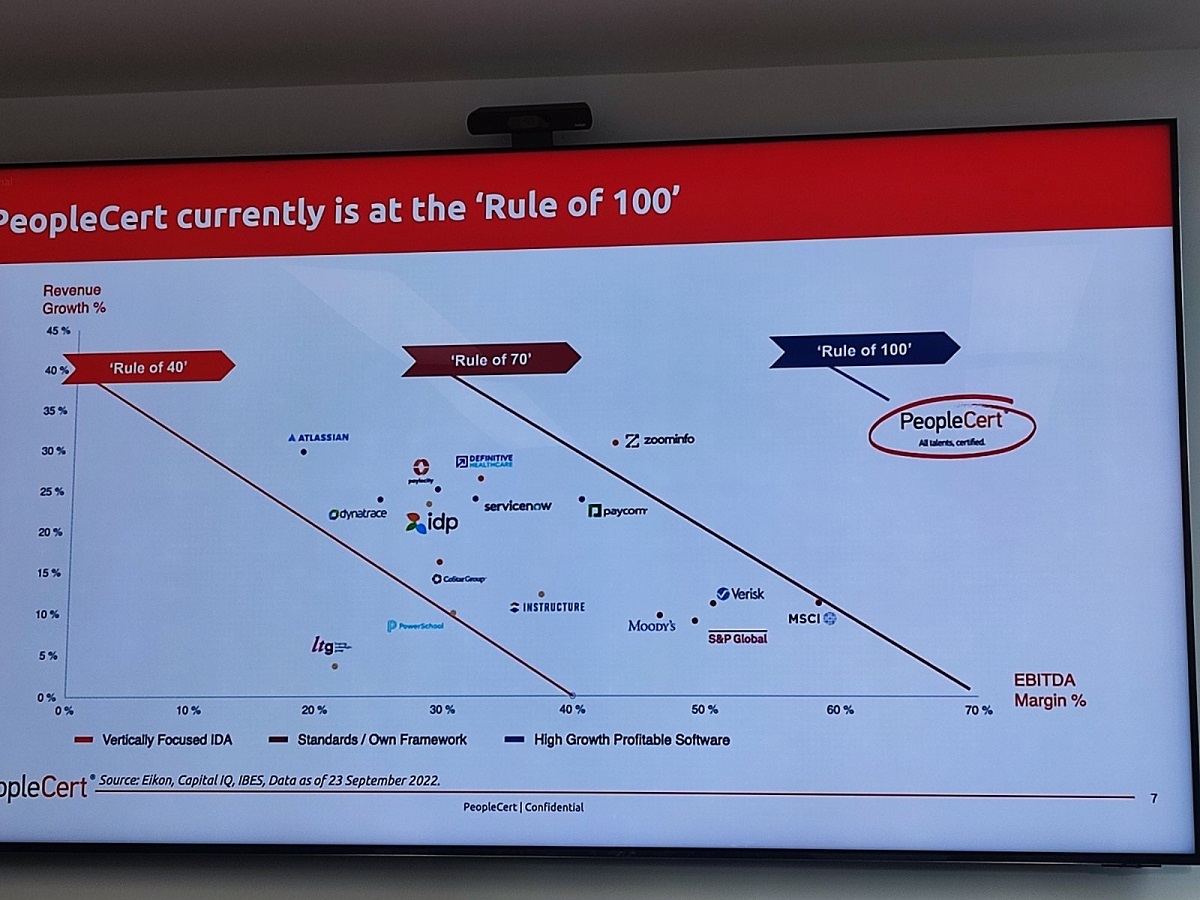 Με εφαλτήριο την εξαγορά της βρετανικής AXELOS τον Ιούλιο του 2021 – η οποία εδραίωσε τον όμιλο ως τον πρώτο ελληνικό μονόκερο με αποτίμηση άνω του 1 δισ. ευρώ – η PeopleCert υλοποίησε με ταχύτητα τους στόχους της ολοκληρώνοντας τις συνέργειες και την ενσωμάτωση της AXELOS 12 μήνες νωρίτερα από το προβλεπόμενο χρονοδιάγραμμα και επεκτάθηκε στους τομείς του Βusiness Analysis, Software Quality και Software Testing μέσω της εξαγοράς των QAI πιστοποιήσεων και στη δημιουργία επίσημου εκπαιδευτικού υλικού (Official Training Material) μέσω εξαγοράς εκπαιδευτικού υλικού από την ΙΤpreneurs.