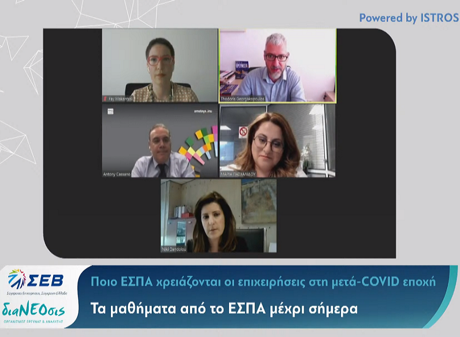 Το νέο ΕΣΠΑ είναι προ των πυλών και αποτελεί ευκαιρία για μια αλλαγή πορείας. Απαιτείται απομάκρυνση από τη διανομή πόρων χωρίς αναπτυξιακό αποτύπωμα και στροφή σε ένα ΕΣΠΑ με λιγότερη γραφειοκρατία, περισσότερα οφέλη για την οικονομία και ταχύτερη ανάπτυξη των επιχειρήσεων. Αυτό ήταν το βασικό συμπέρασμα της διαδικτυακής συζήτησης, με τίτλο «Ποιο ΕΣΠΑ χρειάζονται οι επιχειρήσεις στη μετά-COVID εποχή» που διοργάνωσαν ο ΣΕΒ και η διαΝΕΟσις, την Τρίτη 30 Ιουνίου με τη συμμετοχή σημαντικών προσωπικοτήτων από την πολιτικό και επιχειρηματικό κόσμο.