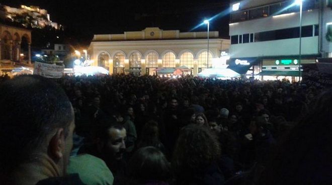 Συγκέντρωση αλληλεγγύης στον απεργό πείνας Νίκο Ρωμανό πραγματοποιούν αυτή την ώρα στο Μοναστηράκι περίπου 3.000 – 4.000 άτομα. Μία άλλη ομάδα διαδηλωτών βρίσκεται στην πλατεία Κοτζιά, στο ύψος του Δημαρχείου. Οι συγκεντρωμένοι κινούνται προς το παρόν στην οδό Αθηνάς. Δεν έχει γίνει γνωστή η διαδρομή που σκοπεύουν να ακολουθήσουν. Ωστόσο εκτιμάται ότι θα κινηθούν προς το Σύνταγμα, όπου πραγματοποιούν παράσταση διαμαρτυρίας οι σύροι πρόσφυγες.