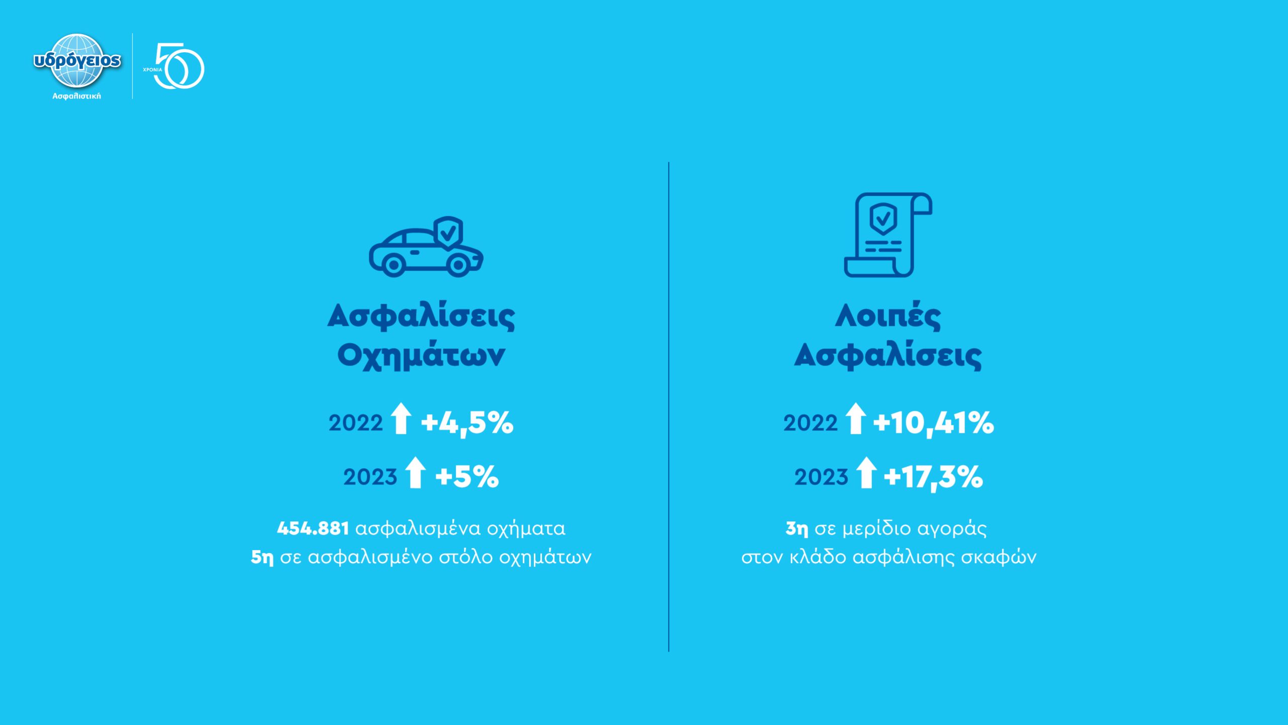 Ο κύριος Κασκαρέλης ανέφερε ότι το 2022, η Υδρόγειος Ασφαλιστική αύξησε την παραγωγή της κατά 5% σε σχέση με τον προηγούμενο χρόνο, επίδοση πάνω από το μέσο όρο της αγοράς καταγράφοντας κύκλο εργασιών €89,4 εκ., ενώ τα στοιχεία του 2023 δείχνουν μία περαιτέρω ενίσχυση των παραγωγικών αποτελεσμάτων της τάξης του 6%.