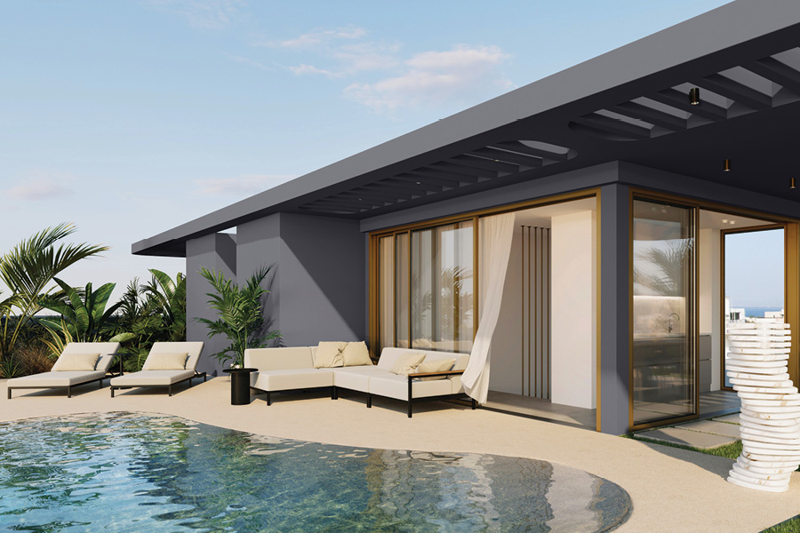 Το στοιχείο του νερού και της φύσης, οι ιδιωτικές πισίνες κάθε κατοικίας και το green roof αποτελούν χαρακτηριστικά της Vital Blue, που συντελούν καθοριστικά σε μια ολιστική εμπειρία διαβίωσης.