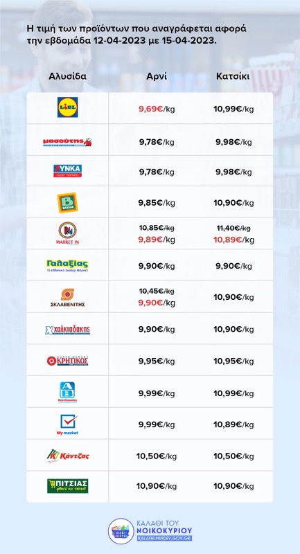 Στο 96,02% των προϊόντων που περιλαμβάνονται στο «Kαλάθι του Nοικοκυριού», οι τιμές μειώνονται ή διατηρούνται σταθερές την 24η εβδομάδα εφαρμογής του (12/4/2023 -18/42023), που αποτελεί ταυτόχρονα την δεύτερη εβδομάδα εφαρμογής του «Καλαθιού του Πάσχα» (περιλαμβάνει επιπλέον των υπόλοιπων προϊόντων, αρνί, κατσίκι, τσουρέκι και σοκολατένια αυγά).