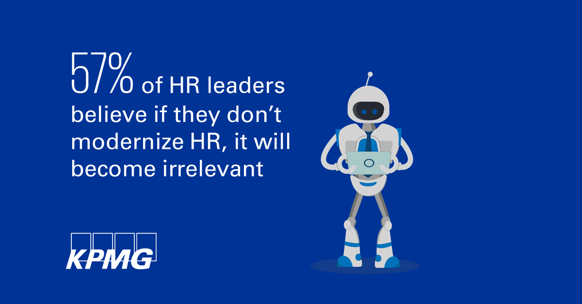 Σύμφωνα με την παγκόσμια έρευνα Future of HR της KPMG International, σχεδόν 3 στα 5 (57%) στελέχη Ανθρώπινου Δυναμικού θεωρούν ότι εάν ο τομέας τους δεν εκσυγχρονίσει την προσέγγισή του στην κατανόηση και το σχεδιασμό των μελλοντικών αναγκών του ανθρώπινου δυναμικού, σύντομα θα καταστεί παρωχημένος στον σύγχρονο κόσμο των επιχειρήσεων.