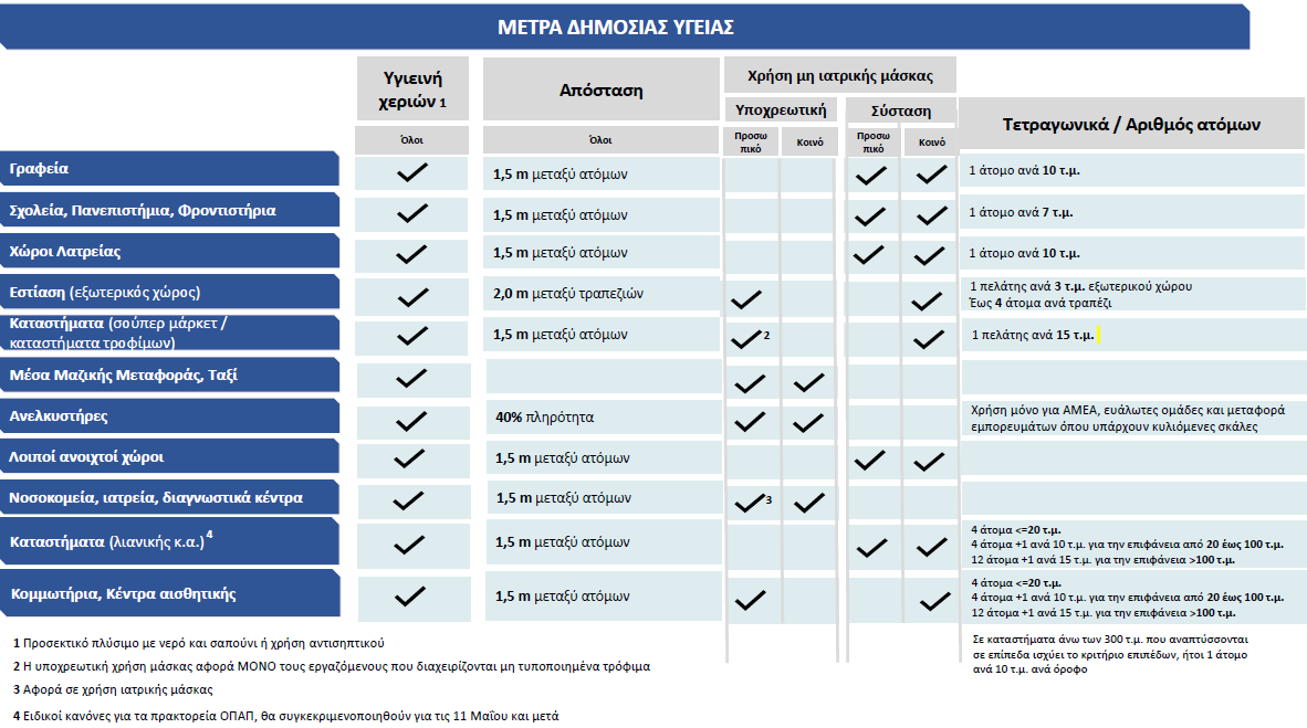 Η μάσκα είναι υποχρεωτική για τους πολίτες στα Μέσα Μαζικής Μεταφοράς, ταξί, ασανσέρ, νοσοκομεία, ιατρεία και στα διαγνωστικά κέντρα. Επιπλέον, όσοι εργάζονται σε Μέσα Μαζικής Μεταφοράς, ταξί, σούπερ μάρκετ, καταστήματα τροφίμων που διαχειρίζονται μη τυποποιημένα τρόφιμα, νοσοκομεία, ιατρεία, διαγνωστικά κέντρα, κομμωτήρια και κέντρα αισθητικής, πρέπει υποχρεωτικά να φορούν μάσκα.