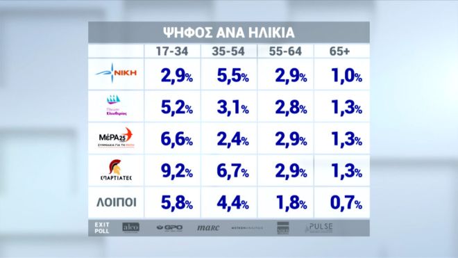 Πώς ψήφισαν οι Έλληνες: 9,2% των νέων επέλεξε “Σπαρτιάτες”, πλήρης αποτυχία ΣΥΡΙΖΑ στο Κέντρο
