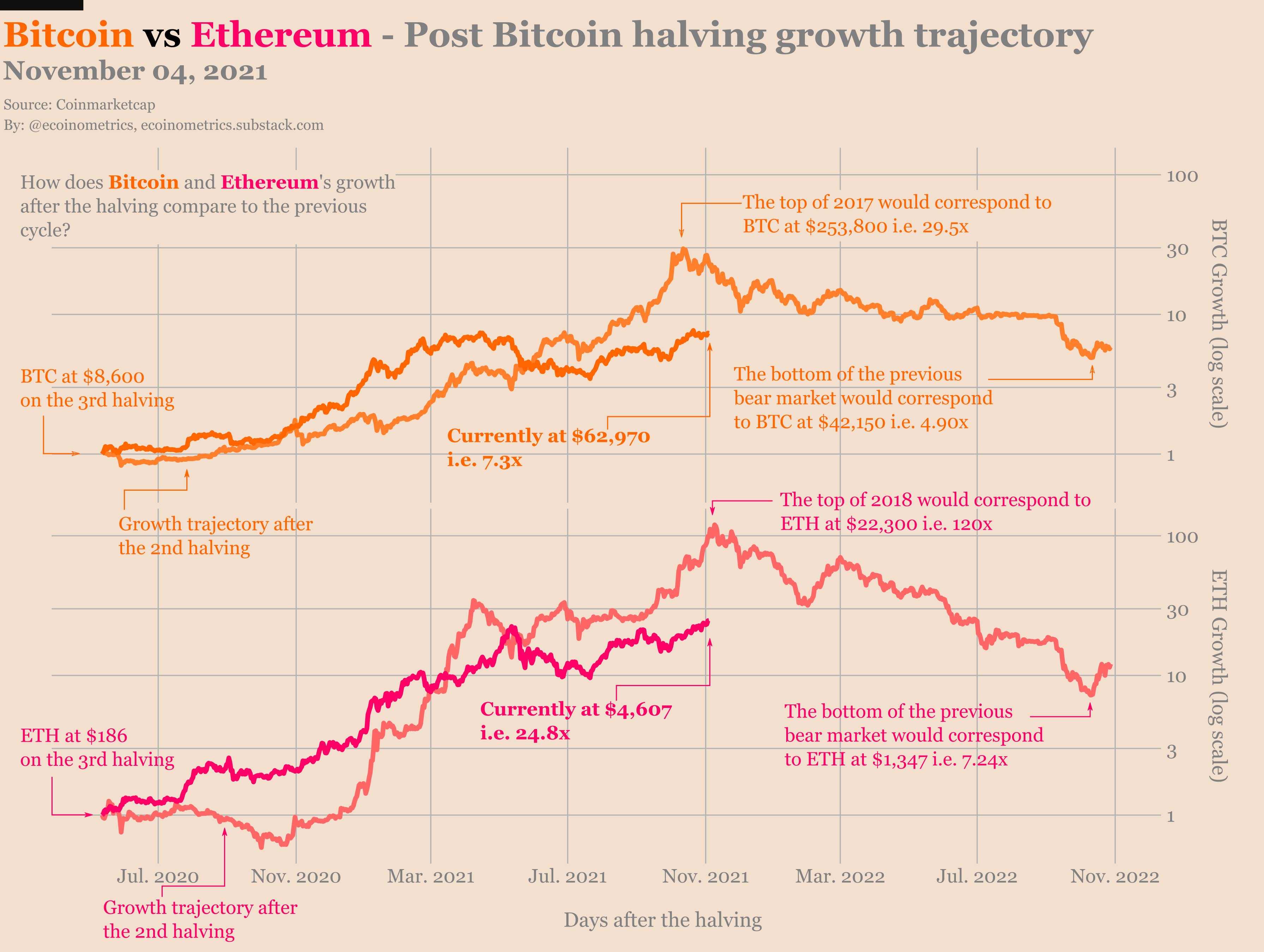 To halving σημειώθηκε το 2012 και το 2016, με το τελευταίο να καταγράφεται τον Μάιο του 2020. Ενώ το Bitcoin έχει αυξηθεί 7,3 φορές από τότε, ένας μεγάλος αριθμός αναλυτών πιστεύει ότι με την επικρατούσα κατάσταση οι κύκλοι θα σταματήσουν να είναι κυρίαρχοι.