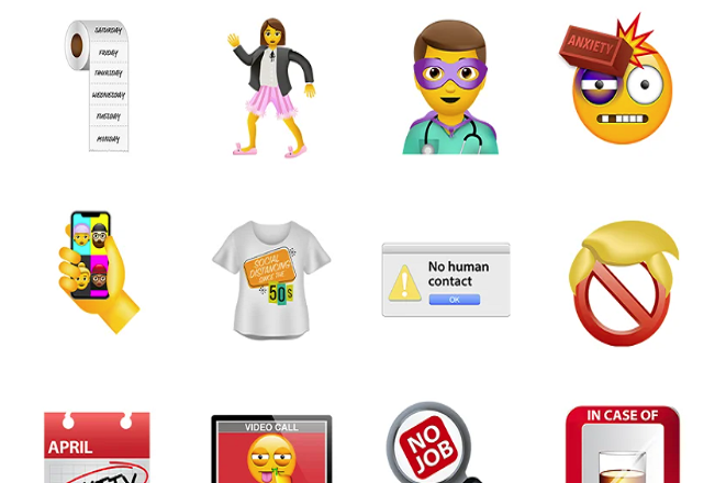 Emojis που «απεικονίζουν» λεπτομέρειες της ζωής στη διάρκεια της κρίσης του κορονοϊού σχεδίασε το νεοϋορκέζικο στούντιο design &Walsh, μεταξύ των οποίων περιλαμβάνεται ένα απολυμαντικό σπρέι χεριών και υγειονομικοί ντυμένοι σούπερ ήρωες.