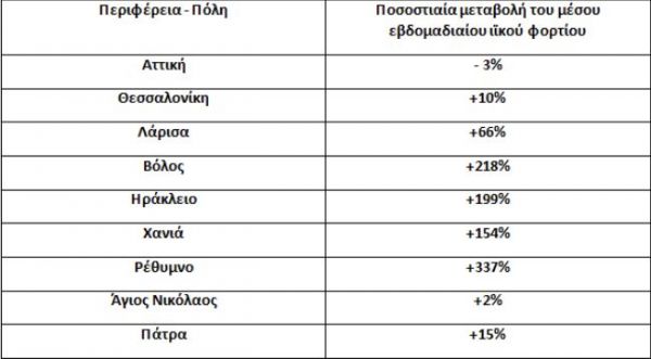 Οι αυξητικές αυτές τάσεις κυμαίνονται από +66% στη Λάρισα έως και +337% στο Ρέθυμνο Κρήτης.