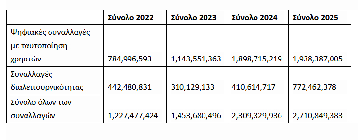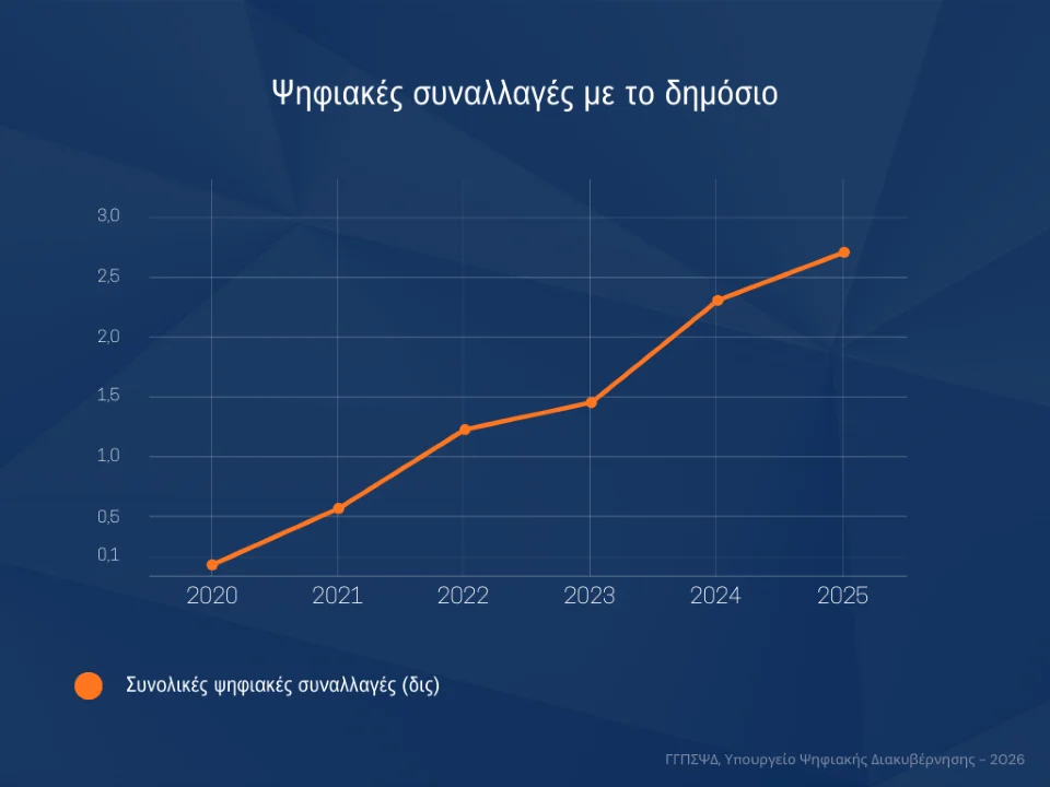 Ρεκόρ 2,7 δισ. ψηφιακών συναλλαγών με το Δημόσιο το 2025