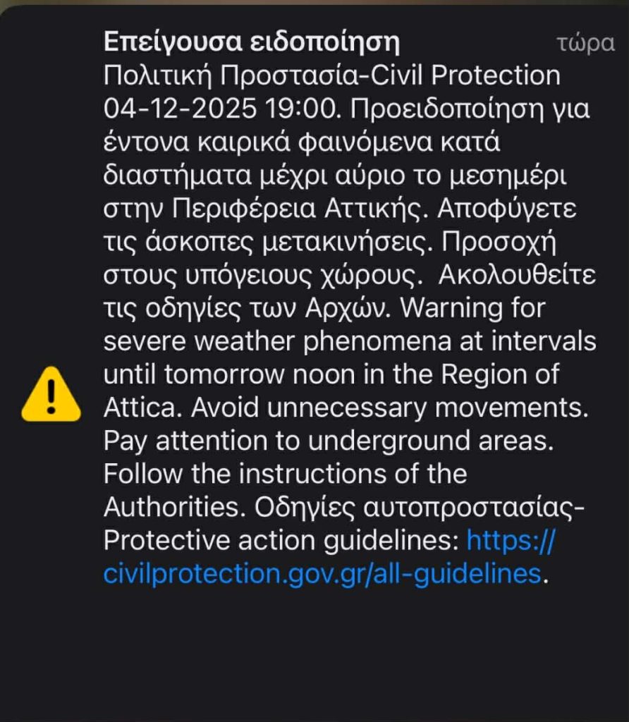 Ήδη σε περιοχές που έχουν εκδηλωθεί έντονα φαινόμενα έχει ηχήσει το 112, το οποίο έστειλε προειδοποιητικό μήνυμα και στους κατοίκους της Αττικής, για «έντονα καιρικά φαινόμενα κατά διαστήματα μέχρι το μεσημέρι της Παρασκευής» και συστήνει στους πολίτες να αποφεύγουν τις άσκοπες μετακινήσεις.