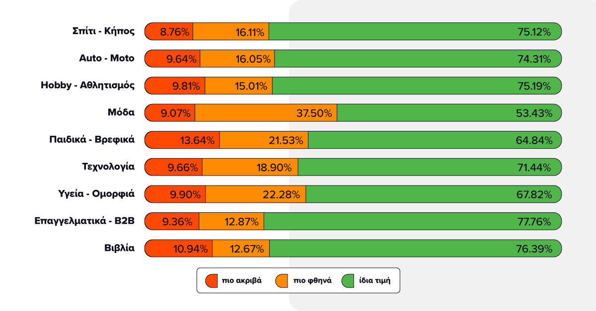 Όσον αφορά στο μέσο καλάθι τώρα, και εδώ επικρατεί σταθερότητα με τη μέση τιμή του καλαθιού σε σχέση με το 2023, να σημειώνει μια πτώση της τάξεως του ενός ευρώ (98 ευρώ έναντι 99 ευρώ την περασμένη χρονιά). Φαίνεται ωστόσο, ότι οι καταναλωτές περίμεναν την περίοδο των εκπτώσεων της Black Friday και Cyber Monday για να κάνουν τις αγορές τους καθώς ο αριθμός των πωλήσεων μέσω skroutz Marketplace εν συγκρίσει με το μέσο όρο πωλήσεων τις προηγούμενες Παρασκευές και Δευτέρες σε βάθος 2 μηνών αυξήθηκε κατά 87% και 40% αντίστοιχα.