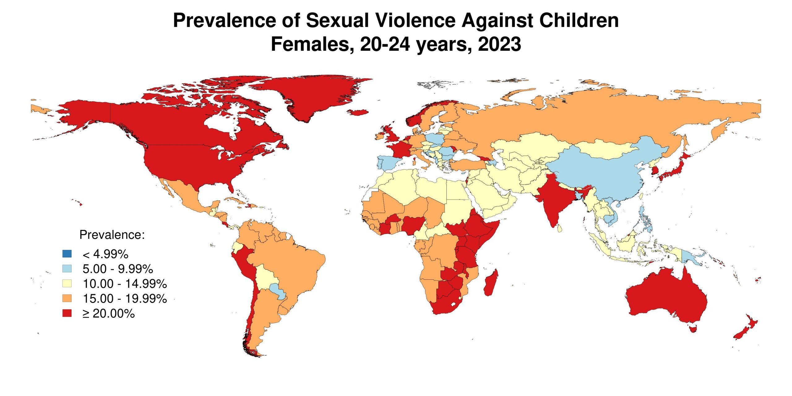 Η μελέτη αναδεικνύει, όπως τονίζει η κ. Γακίδου, την «τεράστια κλίμακα της σεξουαλικής βίας κατά των παιδιών». «Είναι ένα ευρέως διαδεδομένο ζήτημα που επηρεάζει εκατομμύρια αγόρια και κορίτσια παγκοσμίως. Αυτό που είναι ακόμη πιο εντυπωσιακό είναι ότι καμία περιοχή του κόσμου δεν είναι άτρωτη σε αυτό το πρόβλημα, καθώς υψηλά ποσοστά εμφάνισης του φαινομένου παρατηρούνται παντού υπογραμμίζοντας τον παγκόσμιο αντίκτυπό του». Οι χώρες με την υψηλότερη επικράτηση του φαινομένου στις γυναίκες ήταν οι Νήσοι Σολομώντα με σχεδόν 43%, η Ακτή Ελεφαντοστού με 32%, η Χιλή με 31% και η Κόστα Ρίκα και η Ινδία με σχεδόν 31%. Οι ΗΠΑ κατέγραψαν ποσοστό σχεδόν 28% και το Ηνωμένο Βασίλειο 24%. Στους άνδρες, οι χώρες με τα υψηλότερα ποσοστά ήταν η Ακτή Ελεφαντοστού και το Μπαγκλαντές με 28%, η Μποτσουάνα με 27%, η Αϊτή με 26% και η Νιγηρία με 24%. Οι ΗΠΑ είχαν ποσοστό 16% και το Ηνωμένο Βασίλειο περίπου 17%.