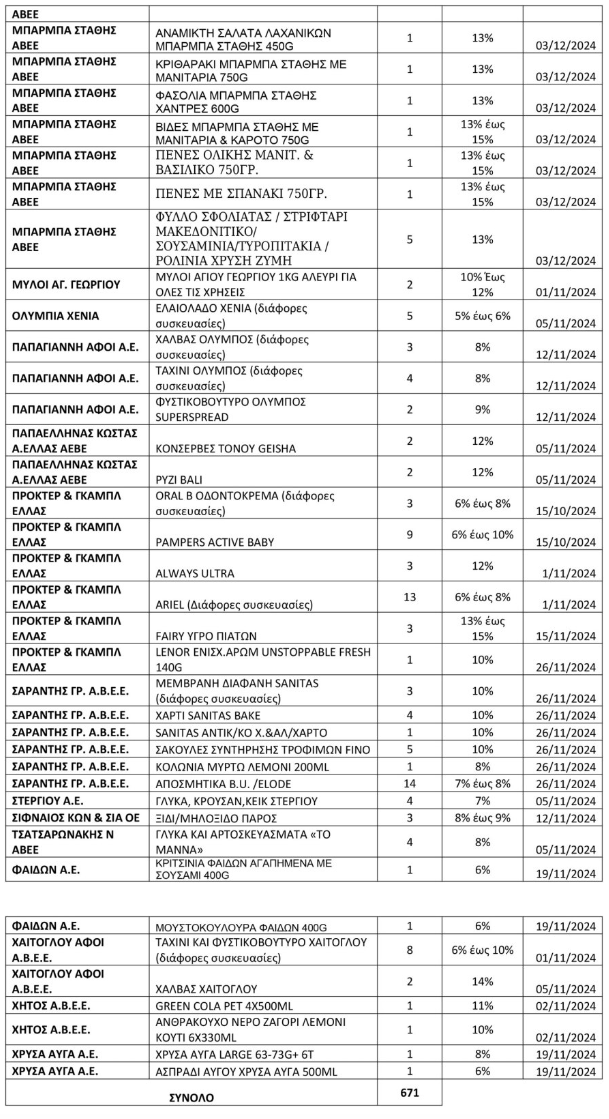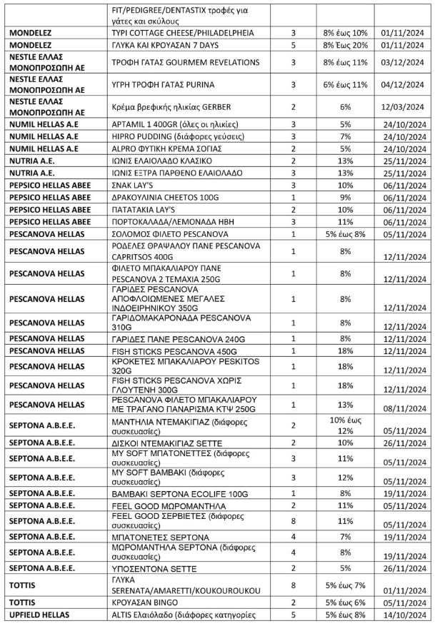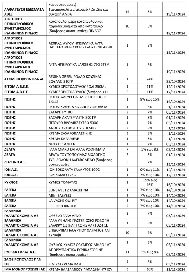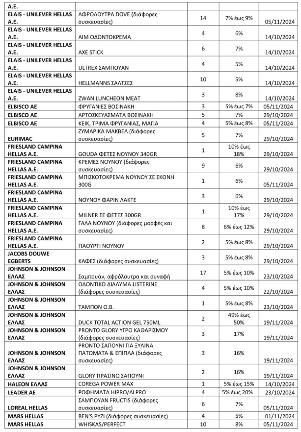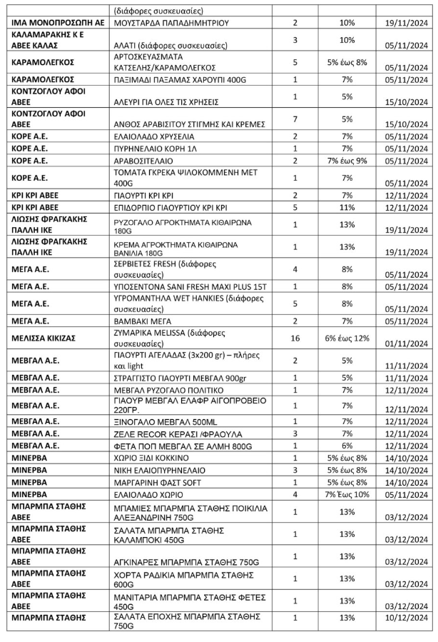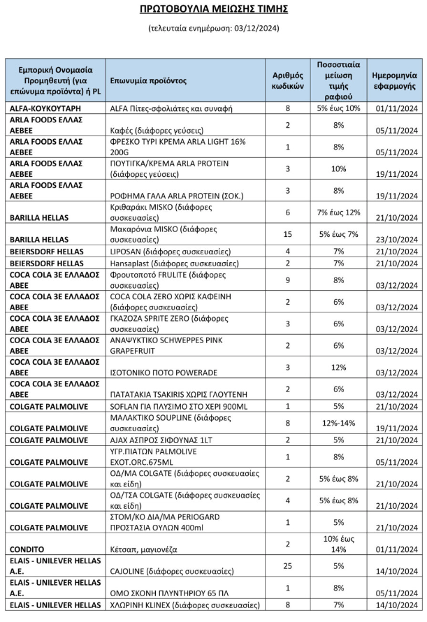 Μειώσεις από 5% μέχρι 24% σε συγκεκριμένα προϊόντα.
