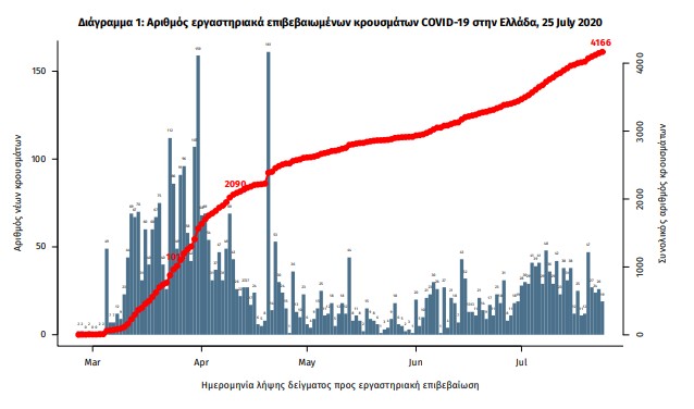 Τριάντα ένα νέα κρούσματα κοροναϊού ανακοίνωσε σήμερα η Ελλάδα, με τα 8 εξ αυτών να εντοπίζονται κατόπιν ελέγχων στις πύλες εισόδου της χώρας. Έτσι, ο συνολικός αριθμός των κρουσμάτων είναι 4.166.