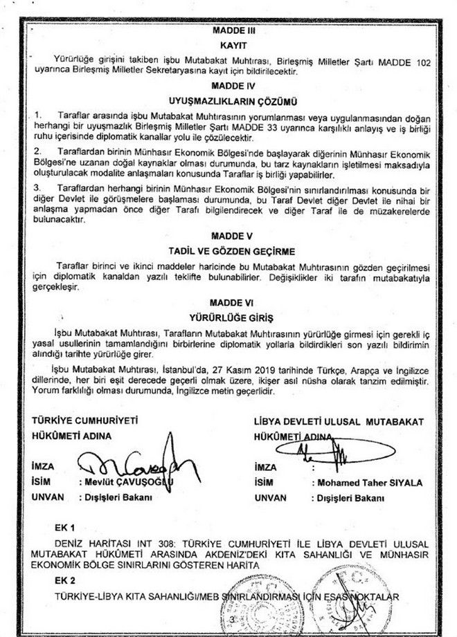 Η συμφωνία Τουρκιας- Λιβύης δεν έχει παραδοθεί στην ελληνικη πλευρά ουτε από την πρεσβεία της Λιβύης, αν και είχε ζητηθεί. Ωστόσο το περιεχόμενό της επιβεβαιώνει ότι δεν είναι σύμφωνη με τους κανόνες του διεθνούς δικαίου, αναφέρουν οι ίδιες πηγές.