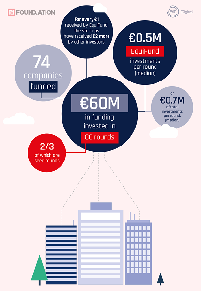 - 60 εκατ. ευρώ έχουν επενδυθεί σε ελληνικές startups μέχρι στιγμής μέσω του μηχανισμού EquiFund. Οι 74 εταιρείες που έχουν ενισχυθεί, έχουν συγκεντρώσει συνολικά 180 εκατ. ευρώ με τη συμβολή και άλλων επενδυτών.