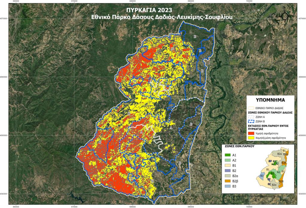 Ξεκίνησε η αποτίμηση των περιβαλλοντικών επιπτώσεων από την πυρκαγιά που εκδηλώθηκε στο Εθνικό Πάρκο Δάσους Δαδιάς-Λευκίμμης Σουφλίου.