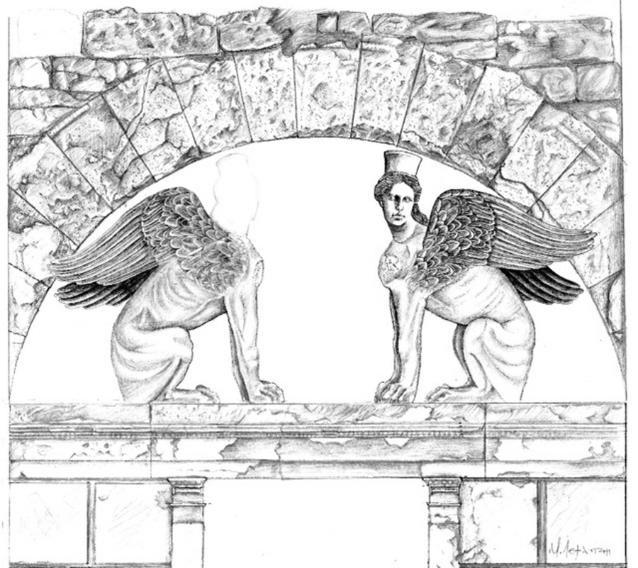 Ακόμα, κάτω από τους πωρόλιθους του δαπέδου, μέσα στην αφαιρούμενη επίχωση βρέθηκαν τμήματα των φτερών των Σφιγγών, ένα μέρος από τον λαιμό της δεύτερης Σφίγγας- ίδιας ποιότητας μαρμάρου και εφάμιλλης γλυπτικής αξίας-καθώς και τμήματα από το ελλείπον τμήμα του μοναδικού ψηφιδωτού, με την εικόνα της αρπαγής της Περσεφόνης από τον Πλούτωνα, που καλύπτει το δάπεδο του δεύτερου θαλάμου-τρίτου χώρου, πίσω από τις Καρυάτιδες.