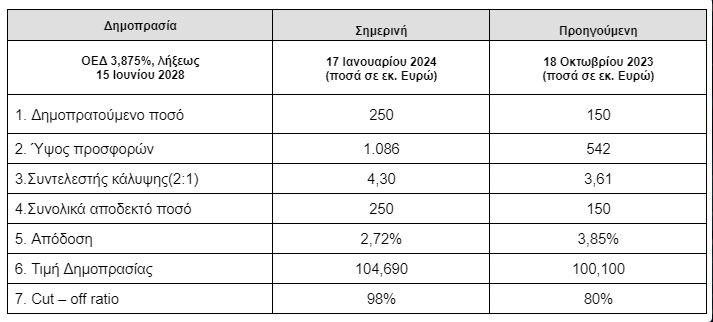 Η δημοπρασία πραγματοποιήθηκε μέσω των Βασικών Διαπραγματευτών Αγοράς (Primary Dealers).