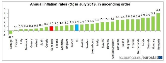 Τα πιο χαμηλά ποσοστά ήταν στην Πορτογαλία (-0,7%), την Κύπρο (0,1%) και την Ιταλία (0,3%). Τα πιο υψηλά ποσοστά καταγράφηκαν στη Ρουμανία (4,1%), την Ουγγαρία (3,3%), τη Λετονία και τη Σλοβακία(3%).