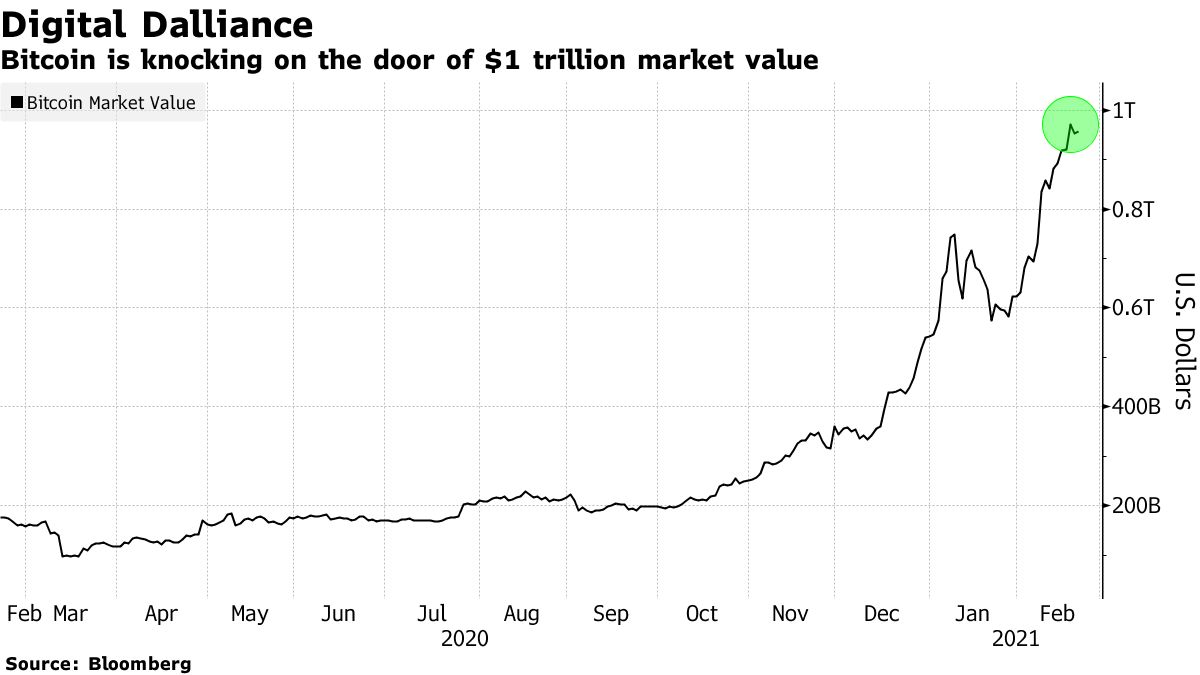 To 1 τρισεκατομμύριο δολάρια πλησιάζει η κεφαλαιοποίηση του bitcoin – μια αύξηση που ενισχύει την απόδοση όλων των κρυπτονομισμάτων και τους δίνει ώθηση τέτοια ώστε να ξεπεράσουν κατά πολύ σε απόδοση παραδοσιακές χρηματιστηριακές αξίες και περιουσιακά στοιχεία όπως οι μετοχές και ο χρυσός.