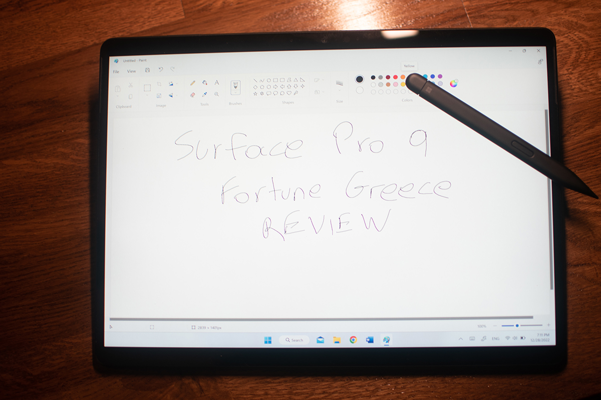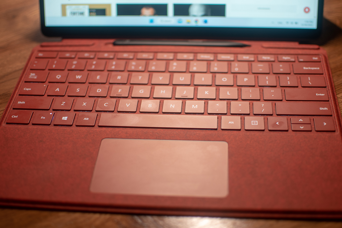 Το προσωπικό μου πληκτρολόγιο στο σπίτι είναι οπτικό / μηχανικό με πολύ «γεμάτο» feedback και -πάνω από το φυσιολογικό- ήχο σε κάθε πάτημα κουμπιού (σχεδόν γραφομηχανής). Παρόλα αυτά, αν και είμαι συνηθισμένος σε περιβάλλον πολύ πιο “extreme” αναφορικά με τη δακτυλογράφηση, βρίσκω το πληκτρολόγιο που συνοδεύει το Surface Pro αρκετά εύκολο να το συνηθίσεις. Μετά από μια μέρα χρήσης έκανα το τεστ δακτυλογράφησης του https://www.typingtest.com/ και το αποτέλεσμα μεταξύ του προσωπικού μου υπολογιστή και του Surface Pro 9 ήταν ακριβώς το ίδιο. Σαν να έγραφα, δηλαδή, με την ίδια ταχύτητα στο ίδιο ακριβώς πληκτρολόγιο. Σαν αίσθηση, το πληκτρολόγιο -που πωλείται ξεχωριστά, όπως ξεχωριστά πωλείται και η πένα- διαθέτει μια σχετική στιβαρότητα στη χρήση, χωρίς να αποφεύγει όμως ένα ελαφρύ λύγισμα στην πίεση ειδικά στα πλήκτρα που βρίσκονται στο μέσο. Δεν είναι κάτι που τραβά την προσοχή, αλλά υπάρχει. Από την άλλη το Windows Precision trackpad μπορεί να μοιάζει μικρό, όμως ποτέ δεν ένιωσα ότι μου λείπει περισσότερος χώρος για να κινήσω το ποντίκι στην οθόνη. Με μια ή το πολύ δύο κινήσεις -αναλόγως που βρίσκεται ο cursor- το ποντίκι φτάνει από τη μια άκρη της οθόνης στην άλλη. Το touch click είναι εξαιρετικά ακριβές χωρίς κάποια ιδιαίτερη ρύθμιση στην ευαισθησία, ενώ το πλήρες click είναι υπερβολικά στιβαρό και δεν νομίζω να υπάρχει καμία περίπτωση ο χρήσης να το πατήσει κατά λάθος, ειδικά αν αφαιρέσει τη δυνατότητα click αφής στις ρυθμίσεις του συστήματος.