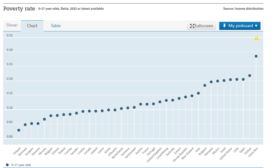 Η Κόστα Ρίκα είχε τα υψηλότερα ποσοστά παιδικής φτώχειας το 2022, με 28,5%.