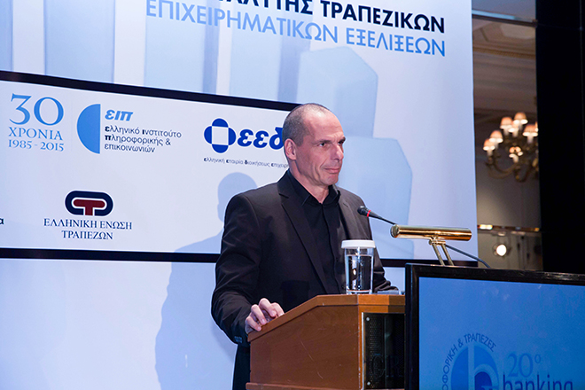 Επίσημος ομιλητής το βράδυ της 1ης ημέρας του Συνεδρίου ήταν ο Υπουργός Οικονομικών, κ. Γιάνης Βαρουφάκης, ο οποίος επεσήμανε μεταξύ άλλων ότι στόχος της διαπραγμάτευσης της Ελληνικής Κυβέρνησης δεν είναι μόνο η επίλυση του ελληνικού ζητήματος αλλά η πραγματική ολοκλήρωση της Ευρωζώνης. χρειάζεται ευρωπαϊκή παρέμβαση για την επίλυση του ζητήματος των μη εξυπηρετούμενων δανείων των ελληνικών τραπεζών, τονίζοντας ότι στο Παρίσι συζητείται το θέμα μεταξύ της ελληνικής πλευράς και των θεσμών. Στο πλαίσιο αυτό, τάχθηκε υπέρ της δημιουργίας μιας bad bank και υπέρ της χρησιμοποίησης κεφαλαίων από το EFSF χωρίς αργοπορία. Αναφέρθηκε, επίσης, στην ανάγκη δημιουργίας αναπτυξιακής τράπεζας.