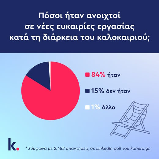 • 84% απαντούν πως ήταν ανοιχτοί σε νέες ευκαιρίες κατά τη διάρκεια του καλοκαιριού.