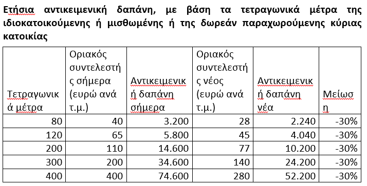 -Για δευτερεύουσα κατοικία παραμένει ως έχει η έκπτωση 50% επί των νέων όμως αντικειμενικών δαπανών.