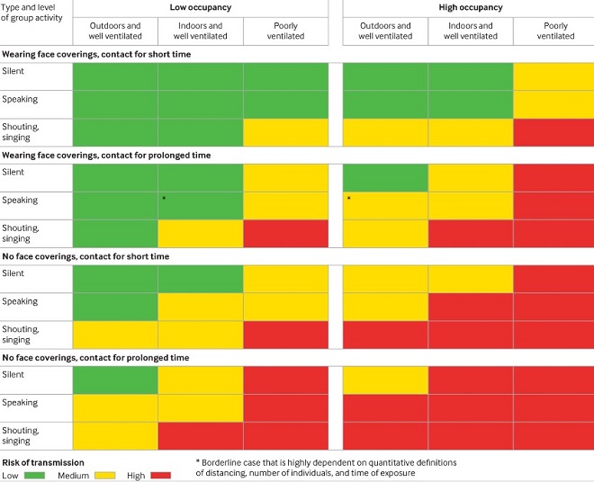 Οι Βρετανοί επιστήμονες σημειώνουν ότι ο εξαερισμός, τα διαφορετικά είδη αέρα και το είδος της δραστηριότητας που λαμβάνει χώρο στον εκάστοτε κλειστό χώρο είναι σημαντικοί παράγοντες μετάδοσης του ιικού φορτίου.