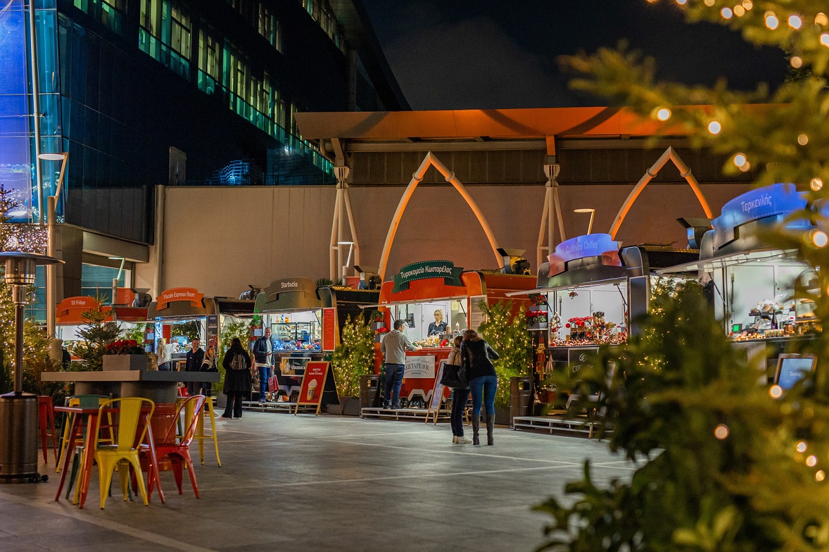 Το πιο λαχταριστό Christmas Market της Αθήνας μας περιμένει καθημερινά, μικρούς και μεγάλους, στο προαύλιο του Golden Hall. Με τις funky καντίνες (Cultivos Coffee, Εverest exclusive, Flocafe Espresso Room, Starbucks, TGI Fridays, Τερκενλής και Τυροκομείο Κωσταρέλου) που όλοι έχουμε αγαπήσει, να φοράνε και πάλι τα γιορτινά τους και να δημιουργούν μια μοναδική ατμόσφαιρά.