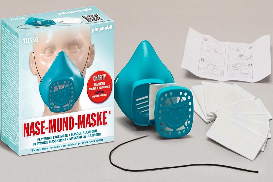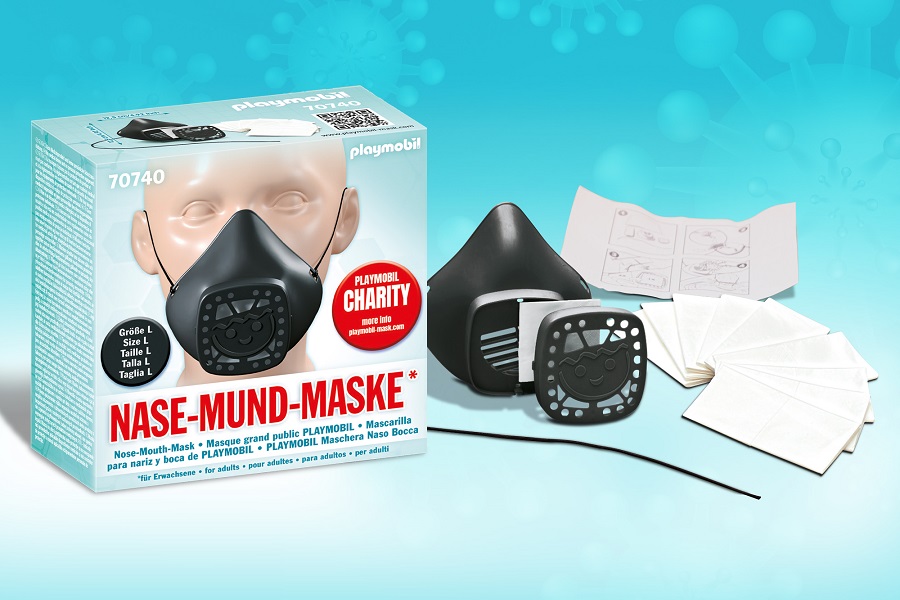 Η παραγωγή του πρώτου επαναχρησιμοποιούμενου «Καλύμματος Μύτης και Στόματος PLAYMOBIL» έχει ξεκινήσει από τις 7 Απριλίου με την εταιρία να έχει δημιουργήσει τα νέα εξειδικευμένα καλούπια που απαιτούνταν για τον περίπλοκο σχεδιασμό της μάσκας, σε χρόνους ρεκόρ. Με τις κυβερνήσεις πολλών χωρών να έχουν κάνει υποχρεωτική τη χρήση μάσκας σε διάφορους χώρους και την ανησυχία γιατρών, νοσηλευτών και κοινού για την έλλειψη τους, που έχει γίνει αισθητή σε παγκόσμιο επίπεδο, οι κινήσεις της εταιρείας για την έγκαιρη παραγωγή του καλύμματος και την κάλυψη των αυξημένων αναγκών του κόσμου, ήταν ένας πραγματικός αγώνας δρόμου.
