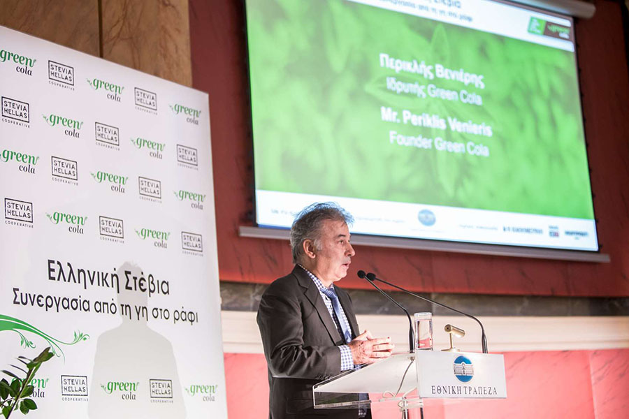 «Το δικό μας παράδειγμα, αυτό της συνεργασίας της Stevia Hellas με την Green Cola, πιστεύω ότι μπορεί να αποτελέσει ένα θετικό δείγμα, μια αισιόδοξη αλλά και πλήρως πρακτική αφήγηση για την Ελλάδα των επόμενων χρόνων. Εμείς που έχουμε παραμείνει εδώ, που συνεχίζουμε να παράγουμε στη χώρα μας δεν πρέπει να ξεχνάμε ότι επιτελούμε έναν πολλαπλό ρόλο που εκτείνεται από την οικονομία έως την κοινωνική συνοχή. Όλες οι ελληνικές επιχειρήσεις πρέπει να συνεχίζουμε να στηρίζουμε τη χώρα μας», υποστήριξε ο Περικλής Βενιέρης, δημιουργός της Green Cola.