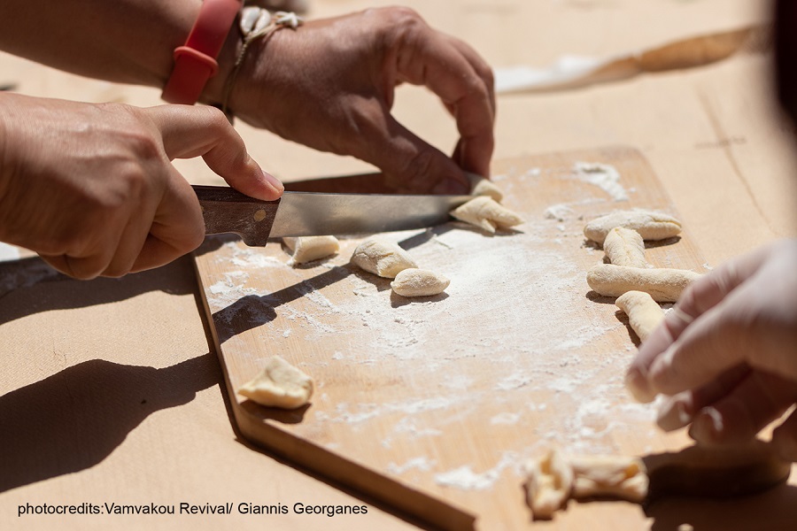 Ο Χάρης Βασιλάκος, Υπεύθυνος Προγραμμάτων της Vamvakou Revival, καλωσόρισε όλους όσοι έφτασαν στο όμορφο χωριό της Βαμβακούς, τη γενέτειρα του Σταύρου Νιάρχου και στην τοποθεσία Κάτω Βρύση όπου έγινε το πικ νικ. Η υπεύθυνη του cluster Αγροδιατροφής & Επιχειρηματικότητας του ICC WOMEN HELLAS, Νίκη Γιαβρόγλου, η επικεφαλής του cluster Λακωνίας, Αιμιλία Ρηγάκου, η chef Ντίνα Νικολάου και τα μέλη του cluster Λακωνίας, Μαρία Καράμπελα, συγγραφέας γαστρονομίας Πάολα Ρόχας, βιολόγος, Επίκουρη Καθηγήτρια του Πανεπιστημίου Πελοποννήσου, με συντονίστρια την υπεύθυνη επικοινωνίας του ICCWH, Ειρήνη Νικολοπούλου, μύησαν τους καλεσμένους ντόπιους, εκδρομείς και επισκέπτες του χωριού στην παραδοσιακή κουζίνα του Πάρνωνα, αποκαλύπτοντας πώς συνδέεται η μαγειρική με την ιστορία και τον πολιτισμό της Λακωνίας. Μαζί τους, παράλληλα με τις ομιλίες, τρεις κυρίες από τη Βαμβακού παρουσίαζαν πώς φτιάχνονται τα παραδοσιακά ζυμαρικά, οι γκόγκες.