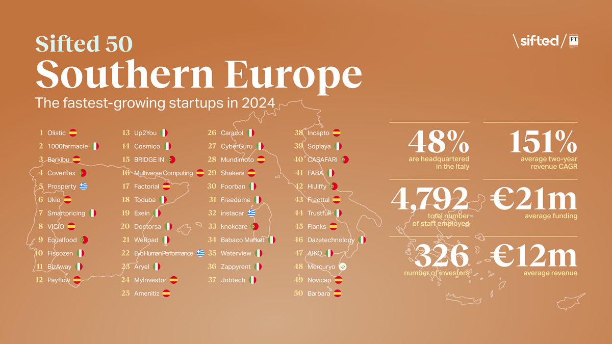 Το Sifted 50 είναι ένας ετήσιος κατάλογος που αξιολογεί και αναδεικνύει τις κορυφαίες startup επιχειρήσεις σε διάφορες περιοχές της Ευρώπης, βάσει του ρυθμού και των στοιχείων ανάπτυξής τους. Ο κατάλογος καταρτίζεται από την Sifted, την διεθνούς κύρους πλατφόρμα μέσων ενημέρωσης που εστιάζει στην ευρωπαϊκή startup σκηνή και βασίζεται σε αναλυτικά στοιχεία για την ανάπτυξη εσόδων των εταιρειών τα τελευταία τρία οικονομικά έτη.