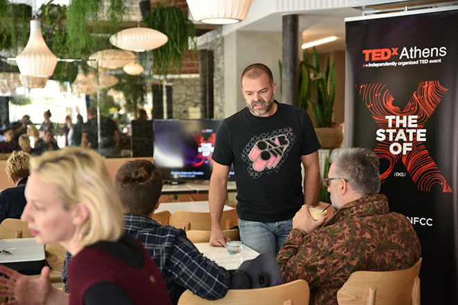 Παρών ήταν και ο Δημήτρης Κόκκορης, Director του TEDxAthens, ο οποίος έσπευσε να ευχαριστήσει τους εθελοντές, που φέτος ανέρχονται σε 150, τους συνεργάτες αλλά και το κοινό. «Άνθρωποι που αναζητούν τον παράγοντα Χ – την μεταβλητή των άπειρων δυνατοτήτων – και που πιθανόν να είναι εκείνοι που θα διαμορφώσουν το πώς θα μοιάζει ο κόσμος μας τα επόμενα δέκα χρόνια», ανέφερε χαρακτηριστικά.