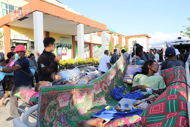 Σε εκατοντάδες τραυματίες προσφέρθηκε ιατρική βοήθεια στον εξωτερικό χώρο ενός νοσοκομείου που υπέστη ζημιές στη Ματαράμ, τη μεγαλύτερη πόλη του Λομπόκ η οποία επλήγη ιδιαίτερα από τον σεισμό. Έξω από το κτίριο, οι γεμάτοι χαλάσματα δρόμοι της πόλης ήταν έρημοι, εκτός από μερικούς επιζώντες που περνούσαν μέσα από τα ερείπια.