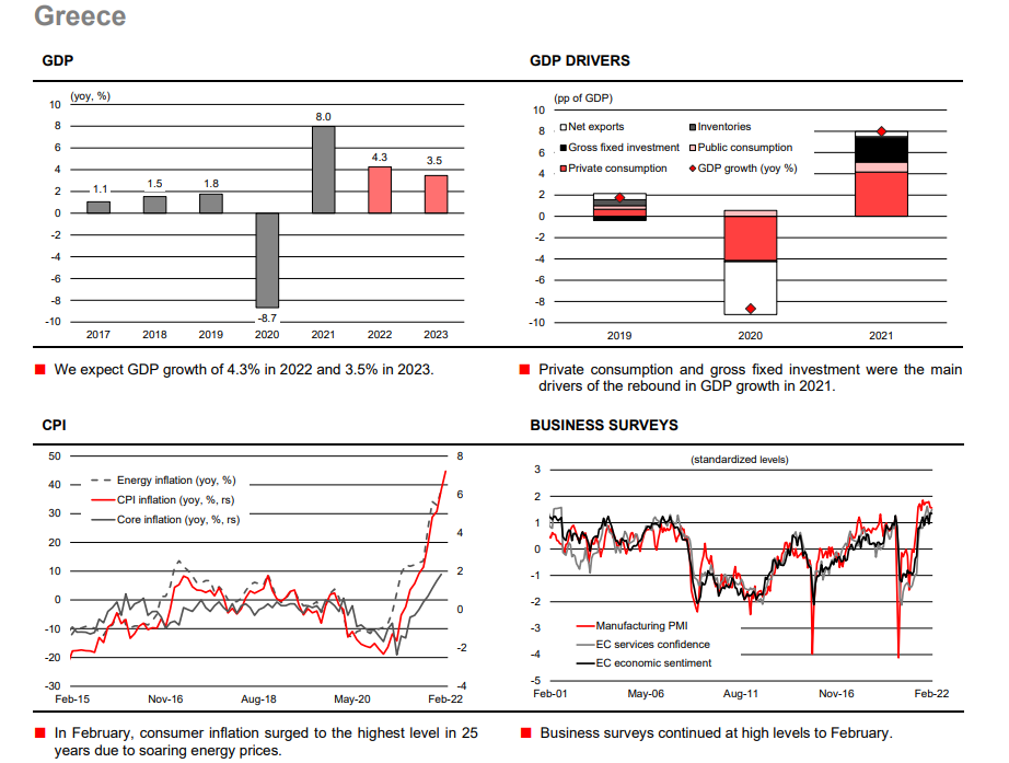 Ωστόσο, δεδομένων δυσχερειών που σχετίζονται με τις ανατιμήσεις σε τρόφιμα, ενέργεια και πρώτες ύλες, η αβεβαιότητα είναι μεγάλη… Την κατάσταση επιδεινώνει η ρωσική εισβολή στην Ουκρανία.