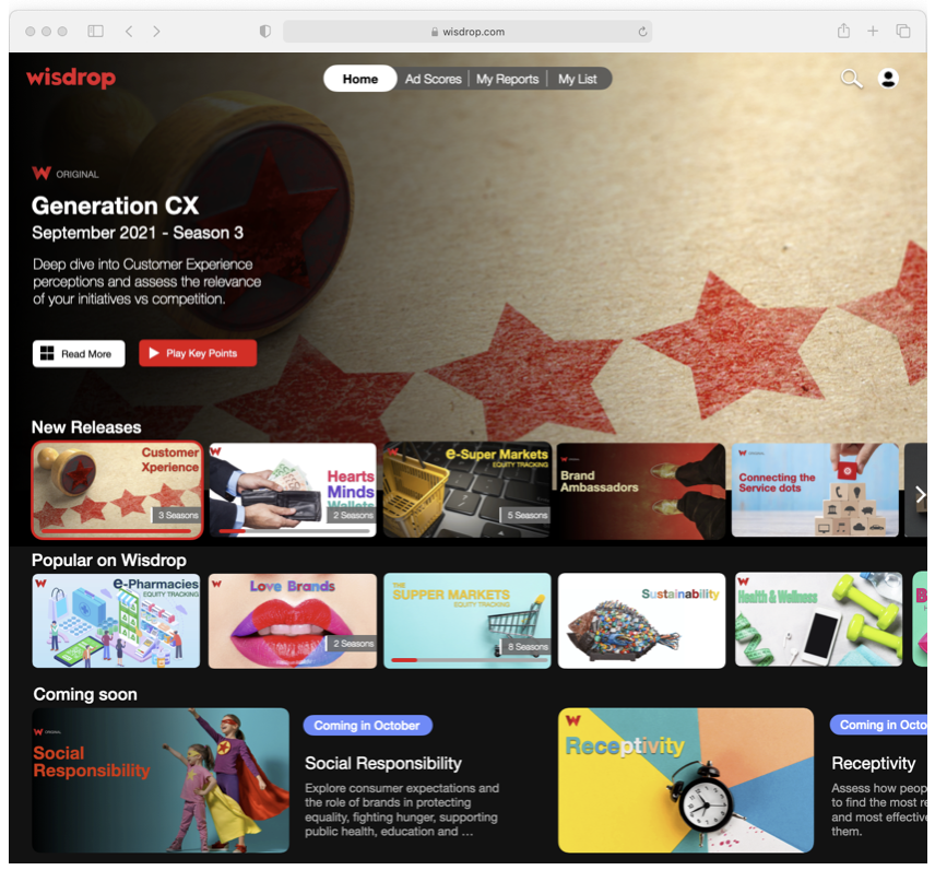 Αυτό που κάνει όμως το Wisdrop ακαταμάχητο, είναι ο τρόπος παρουσίασης της γνώσης που προσφέρει. Ο σχεδιασμός της πλατφόρμας προσομοιάζει σε μεγάλο βαθμό τις πλατφόρμες streaming, τόσο σε επίπεδο αισθητικής, όσο και σε επίπεδο ευχρηστίας, δημιουργώντας ένα περιβάλλον που πραγματικά εμπνέει κάποιον να μάθει για τον καταναλωτή και να αξιοποιήσει τη γνώση αυτή. Δεν είναι τυχαίο ότι οι συνδρομητές του το αποκαλούν «το Netflix της έρευνας».