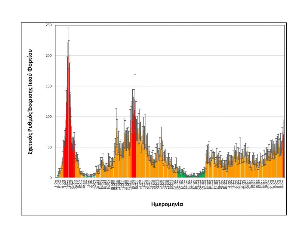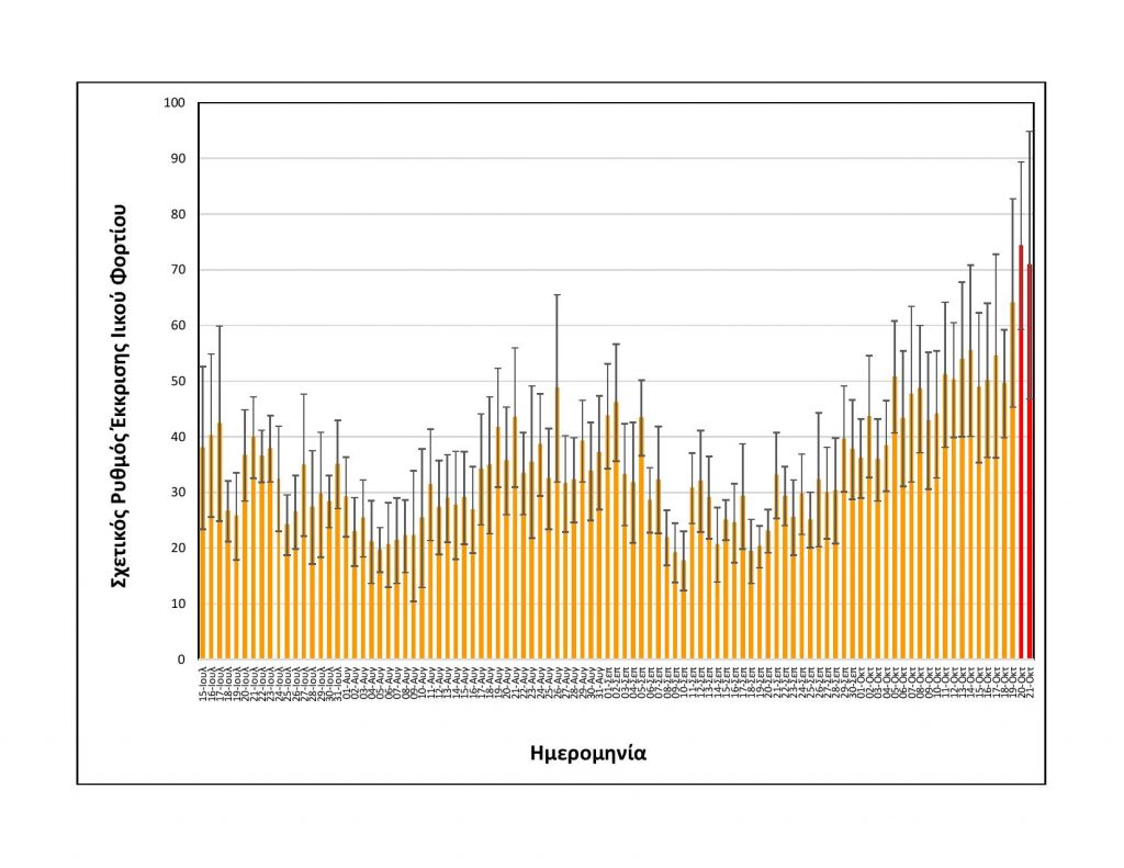 – Αυξημένη (+28%) σε σχέση με τη μέση τιμή των δύο αμέσως προηγούμενων μετρήσεων της Δευτέρας 18/10 και της Τρίτης 19/10.