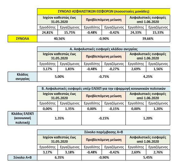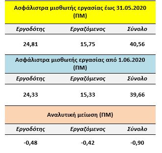 Ξεκινά από τη Δευτέρα 1 Ιουνίου 2020, η εφαρμογή του μέτρου της μείωσης των ασφαλιστικών εισφορών κατά 0,90 ποσοστιαίες μονάδες στη μισθωτή εργασία μόνο για τις θέσεις πλήρους απασχόλησης, μέτρο που επηρεάζει περίπου 1,5 εκατ. μισθωτούς εργαζόμενους του ιδιωτικού τομέα.