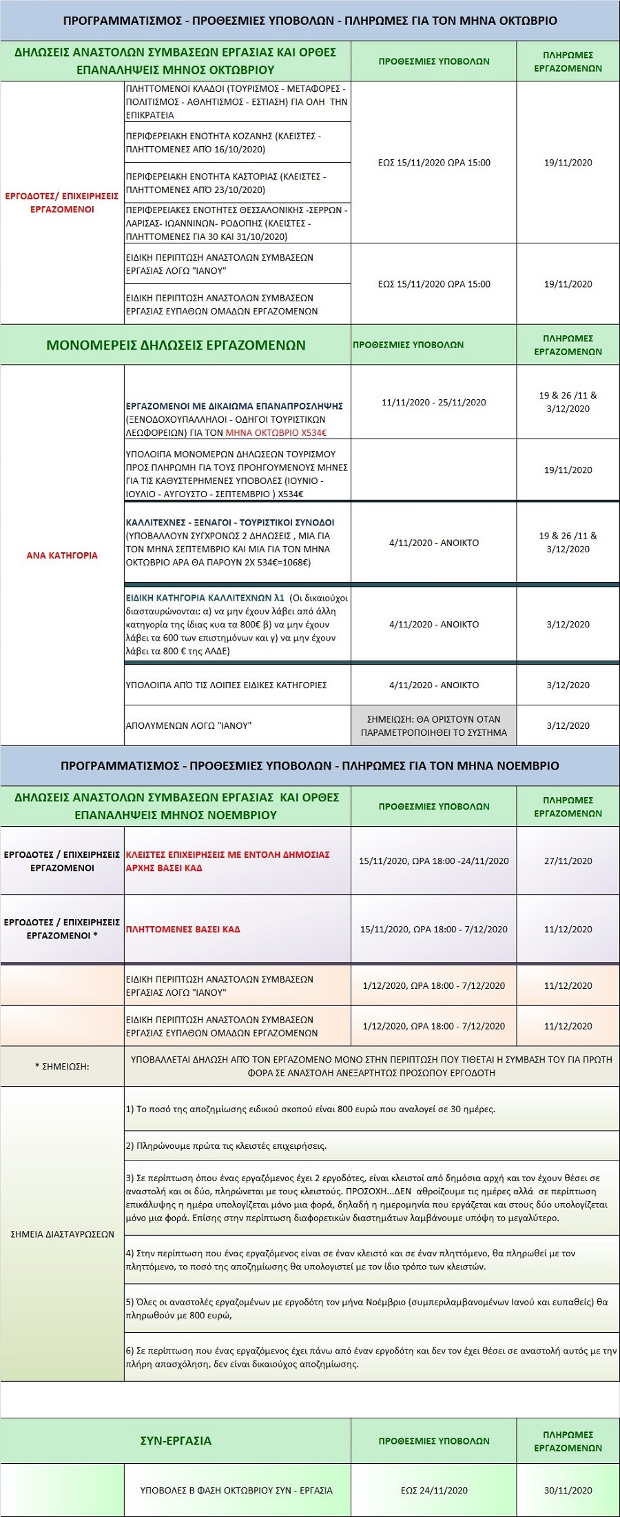 – τις δηλώσεις αναστολών συμβάσεων εργασίας και ορθές επαναλήψεις μηνός Οκτωβρίου,
