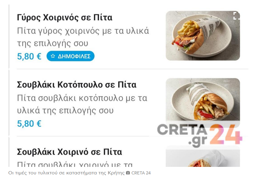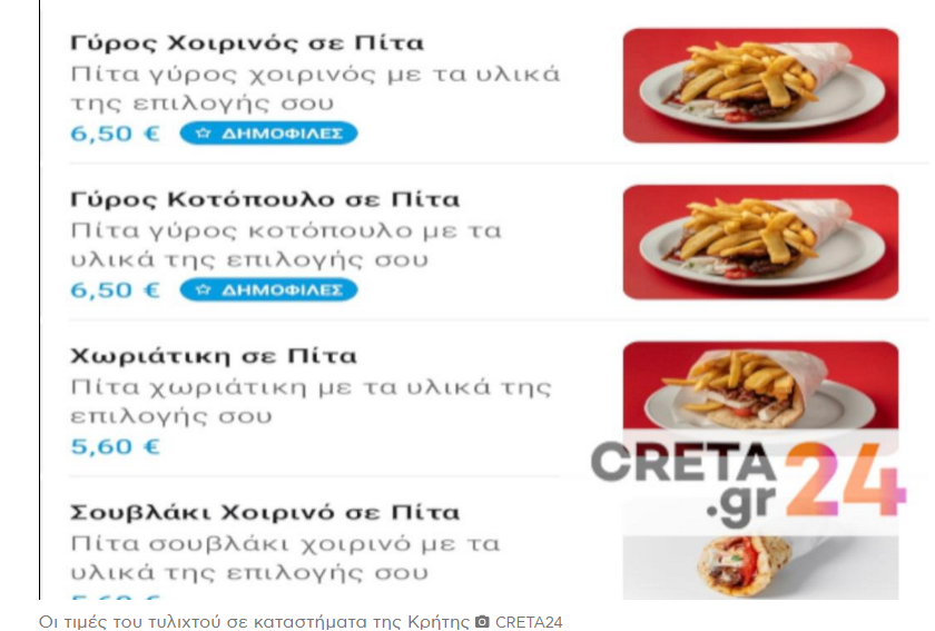 Τώρα στην Κρήτη και όπως αποκάλυψε το Creta24, όλα δείχνουν πως πολλά ψητοπωλεία του Ηρακλείου κοστολογούν το τυλιχτό τους από 6-6,50 ευρώ, με ελάχιστα από αυτά να καταφέρνουν να συγκρατήσουν το κόστος χαμηλότερα.