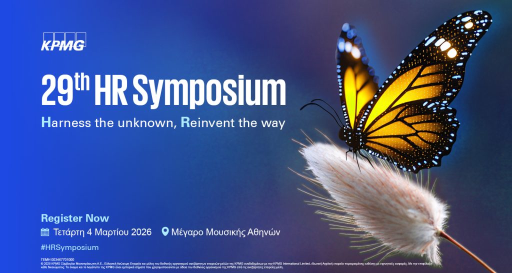 Με κεντρικό μήνυμα “Harness the Unknown – Reinvent the Way”, το 29th HR Symposium θα πραγματοποιηθεί στις 4 Μαρτίου, στο Μέγαρο Μουσικής Αθηνών. Το πρακτικό, στρατηγικό, ανατρεπτικό, hands on συνέδριο – θεσμός της KPMG στην Ελλάδα, προσκαλεί για ακόμα μια χρονιά όλη την κοινότητα του HR για να εξερευνήσει πώς να αξιοποιήσουμε το ανθρώπινο δυναμικό των εταιρειών μας και πώς να διαμορφώσουμε το μέλλον της επιχειρηματικής ζωής υπό τον άξονα της ηγεσίας και της αλλαγής.
